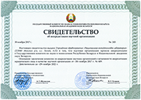 Область аккредитации лаборатории, актуальные сведения об аттестате аккредитации представлены на официальном интернет-сайте Республиканского унитарного предприятия «Белорусский государственный центр аккредитации» в реестре Национальной системы аккредитации Республики Беларусь, раздел «Испытательные лаборатории».
